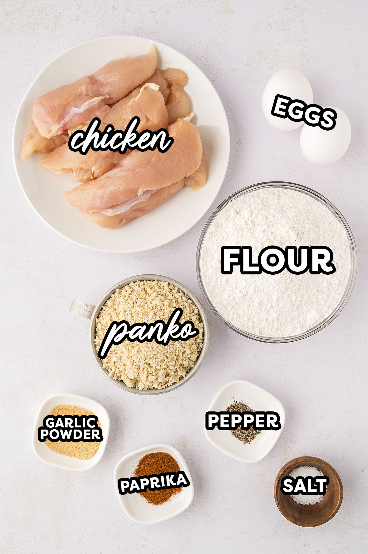 - Flour mixture: Combine flour, 1 teaspoon salt, ½ teaspoon pepper, 1 teaspoon smoked paprika, and 1 teaspoon garlic powder.