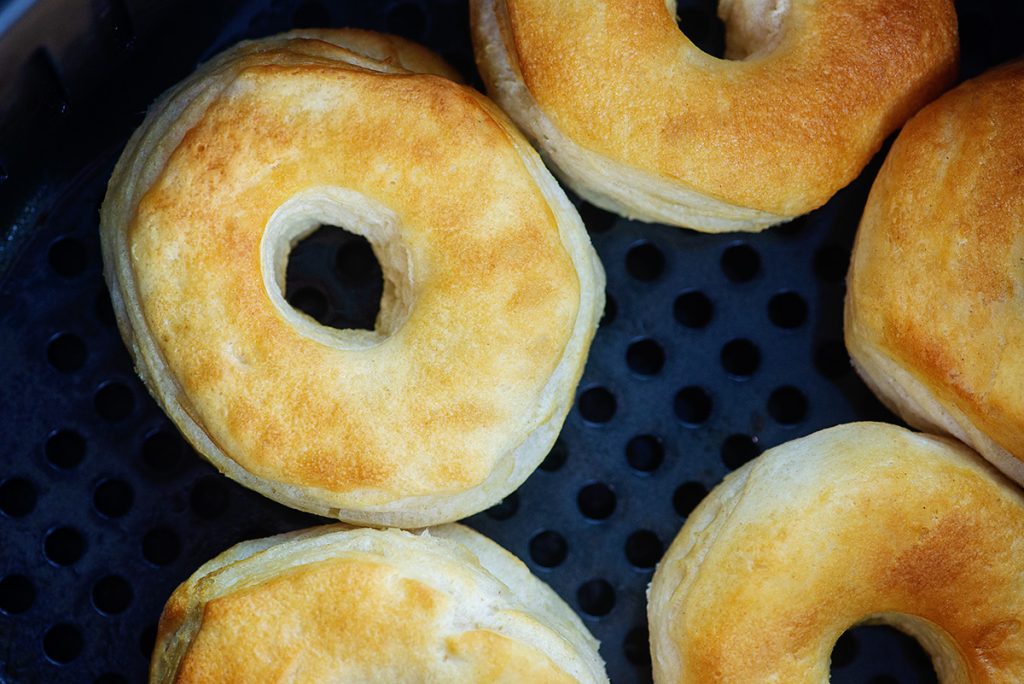 • Biscuit dough: For this easy air fryer donut recipe, grab a can of refrigerated biscuit dough. Just avoid the layered variety—they’re better suited for something like our maple bar donuts.