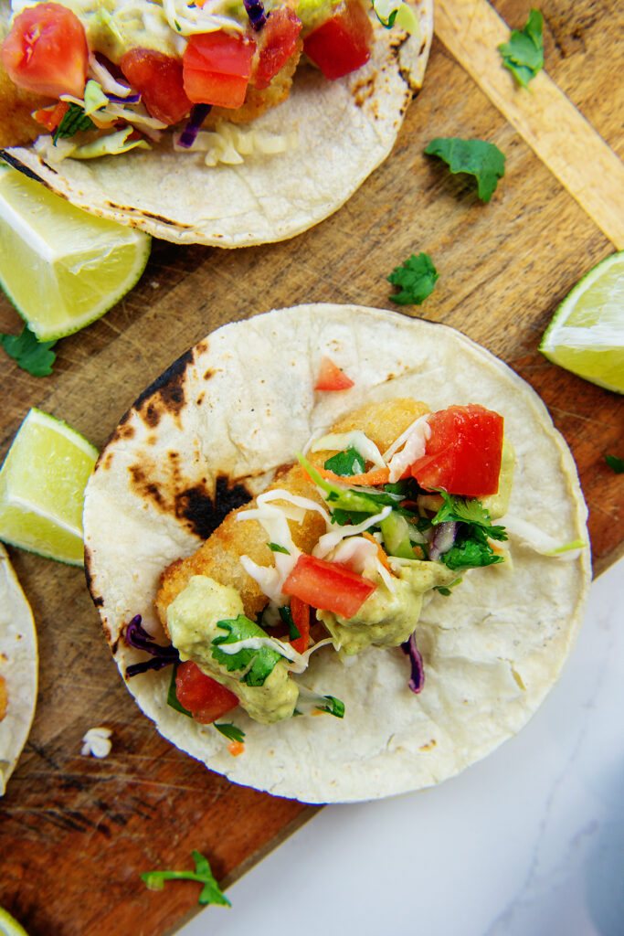 - Assemble the tacos: Warm your tortillas in a dry skillet or microwave. Place a couple of crispy fish sticks in each tortilla, top with a generous scoop of cilantro lime slaw, and drizzle with the avocado crema. Add a sprinkle of diced tomatoes for extra freshness.